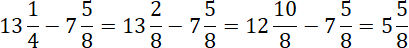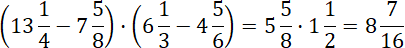 Na początek przyjrzyj się działaniu po lewej: dodawanie i mnożenie dadzą za duże wyniki, dzielenie liczby, która wynosi około 13 przez liczbę równą około 8 da niecałe 2, czyli za mało, pasuje więc odejmowanie, upewnij się licząc różnicę. Następnie przyjrzyj się działaniu na prawo: dodawanie i mnożenie niepotrzebnie zwiększą liczbę, pozostaje dzielenie albo odejmowanie – wybierz właściwy znak, wykonując obliczenia. Na koniec znajdź znak działania na środku: rozważ dodawanie lub odejmowanie. Następnym krokiem jest napisanie wyrażenia: skoro mnożymy wyniki odejmowania, to różnice należy wyliczyć na początku – zapisz je w nawiasach, a pomiędzy nimi wstaw znak mnożenia.