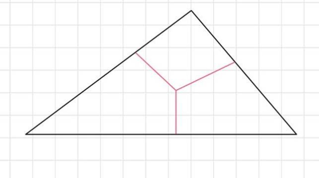 Możesz narysować trójkąt, a w jego środku postawić kropkę. Od niej poprowadź odcinki do wszystkich boków.
