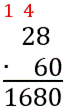 Działka ma kształt prostokąta, zatem aby obliczyć jej pole pomnóż jej długość przez szerokość: 28 m ꞏ 60 m.