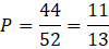 Aby obliczyć prawdopodobieństwo wylosowania karty niebędącej ani damą, ani królem, należy podzielić ilość pozostałych kart, przez ilość wszystkich kart.