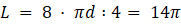 Ta figura składa się z ośmiu ćwiartek koła. Długość okręgu o średnicy d wyraża się wzorem L = πd.