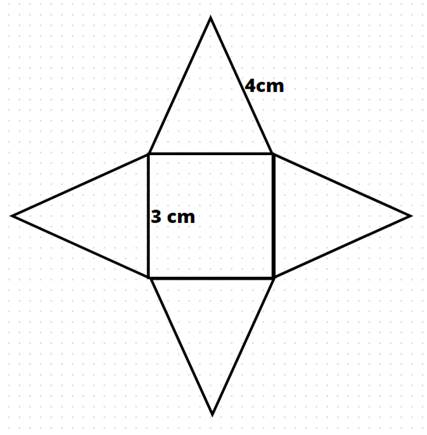 W tym zadaniu musisz narysować siatkę ostrosłupa prawidłowego czworokątnego o krawędzi podstawy długości 3 cm i krawędzi bocznej długości 4 cm.