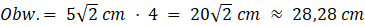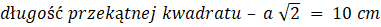 W tym zadaniu musisz uzasadnić, że obwód kwadratu, które przekątne mają długość 10 cm, ma więcej niż 28 cm.