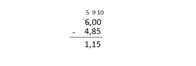 6,00 m – zapisz w taki sposób, aby móc obliczyć różnicę sposobem pisemnym.