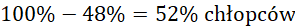 Musisz odjąć od 100% wszystkich nowo narodzonych dzieci odjąć procent, jaki stanowią dziewczynki. Pozostała reszta to procent, jaki stanowią chłopcy. Chłopców jest więcej niż dziewczynek, ponieważ ich procent wśród nowo narodzonych dzieci jest większy.