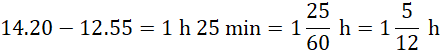 Najpierw oblicz czas, jaki mija pomiędzy 14.20 a 12.55, następnie pomnóż prędkość razy czas.