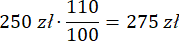 Oblicz, jak zmienił się łączny koszt noclegów i wyżywienia wiedząc, że za noclegi na wycieczce uczniowie mieli zapłacić 200 zł, a za wyżywienie 250 zł, jednakże wyżywienie podrożało o 10%, a na noclegi była promocja 12,5%.