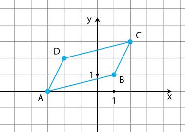 W tym zadaniu musisz narysować układ współrzędnych i zaznaczyć w nim punkty A, B, C jak na rysunku obok. Musisz także odnaleźć taki punkt D, aby czworokąt ABCD był równoległobokiem.