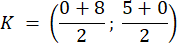 Masz dane punkty G=(0,5) i H=(8,0). W tym zadaniu musisz znaleźć takie punkty K, L, M, by: punkt K był środkiem odcinka GH.