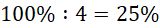 Całość koła to 100%. Koło podzielono na cztery części, więc musisz podzielić 100% na dwa, aby dowiedzieć się, jaki procent koła zamalowano. Zamalowano trzy części koła, a więc musisz pomnożyć procent zamalowania jednej części razy 3.