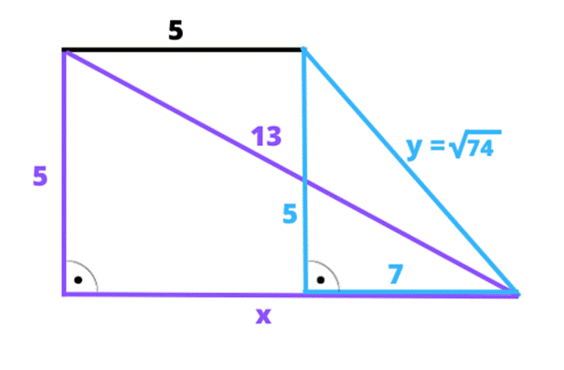 Oznacz dłuższą postawę jako x. Aby obliczyć jej długość skorzystaj z twierdzenia Pitagorasa. Następnie oznacz jako y ramię trapezu. Ponownie wykorzystaj twierdzenie Pitagorasa, aby obliczyć jego długość. Następnie oblicz pole trapezu korzystając ze wzoru: