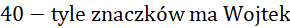Odpowiedź: Wojtek ma 40 znaczków.