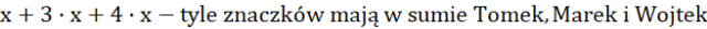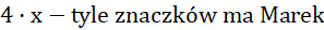 , a Marek 4 razy więcej znaczków od Tomka, a więc