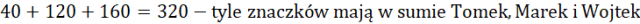 . Chłopaki mają razem 320 znaczków, czyli układamy równanie