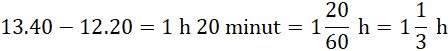 Najpierw musisz obliczyć, jaki czas mija pomiędzy 12.20 a 13.40. Następnie zamień wynik, aby był podany całkowicie w godzinach. Teraz musisz podzielić drogę, jaką przejechał samochód przez czas.