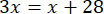 3x = x + 28