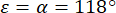 Kąt α to kąt naprzemianległy do kąta ε, więc mają taką samą miarę.