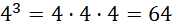 Podnosisz liczbę 4 do potęgi 3, więc mnożysz ją trzy razy przez samą siebie.