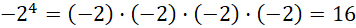 Podnosisz liczbę (-2) do potęgi 4, a więc mnożysz ją cztery razy przez samą siebie. Potęga jest parzysta, czyli wynik będzie dodatni.