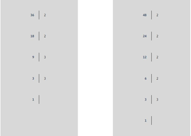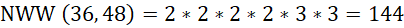 Aby obliczyć NWD i NWW, musisz najpierw rozłożyć liczby na czynniki pierwsze. Następnie, aby wyznaczyć NWD (największy wspólny dzielnik), musisz wziąć iloczyn wspólnych czynników obu liczb. Czyli w tym przypadku obie liczby dzielą się dwa razy przez 2 oraz jeden raz przez 3. Teraz do obliczenia NWW (najmniejszej wspólnej wielokrotności) musisz wziąć iloczyn czynników, które w rozkładzie wystąpiły więcej niż jeden raz, ale tak, żeby czynniki nie powtarzały się z obu liczb.