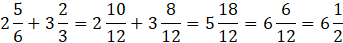 W pierwszej kolejności musisz sprowadzić ułamki do wspólnego mianownika, następnie dodajesz całości i liczniki , a mianownik pozostawiasz bez zmian.