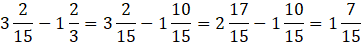 W pierwszej kolejności musisz sprowadzić ułamki do wspólnego mianownika, następnie odejmujesz całości i liczebniki, a mianownik pozostawiasz bez zmian.