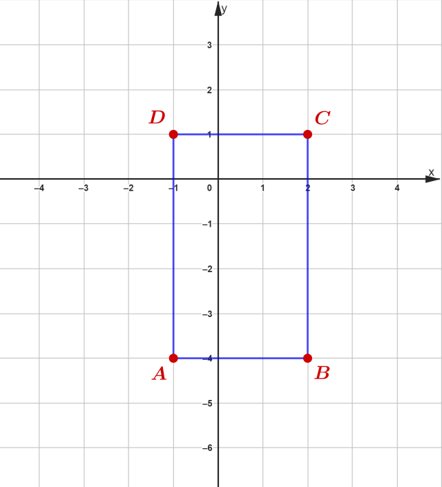 W tym zadaniu musisz wskazać obwód prostokąta o współrzędnych A = ( -1, -4 ), B = (2, 4), C = ( 2, 1 ), D = ( -1, 1 ).