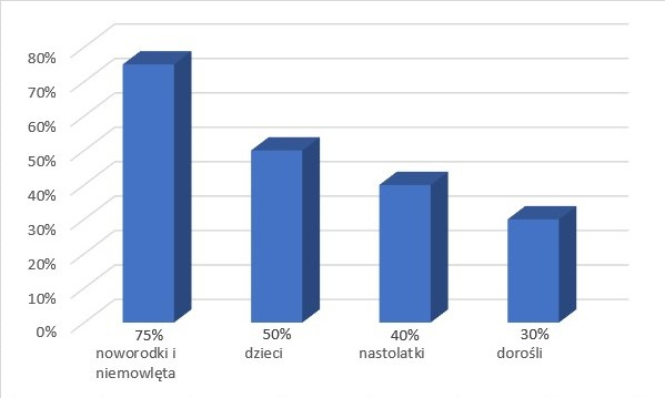 Odczytaj dane z tabelki i przedstaw je na diagramie słupkowym wyrażonym w procentach.