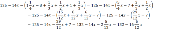 W tym zadaniu musisz zapisać wyrażenie algebraiczne opisujące długość wyróżnionego boku figury przedstawionej na rysunku, skoro jej obwód wynosi 125 – 14x.