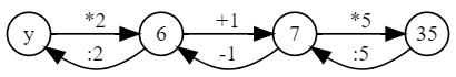 Rozwiązując graf, pamiętaj o kolejności wykonywania obliczeń. Najpierw wykonujesz działania w nawiasie, potem mnożenie i dzielenie, a na końcu dodawanie i odejmowanie. Zapisujesz u góry grafu wszystkie działania wykonywane w równanie zgodnie z kolejnością. Na dole grafu zapisujesz ich przeciwieństwa i obliczasz niewiadomą, licząc od tyłu. Na końcu wykonaj sprawdzenie, czy rozwiązanie się zgadza, podstawiając w miejsce niewiadomej rozwiązanie.