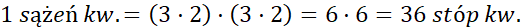 Podobnie jak liczymy jednostki kwadratowe, takie również możemy zamieniać. Wystarczy obliczyć pole kwadratu o boku 1 sążeń w stopach.