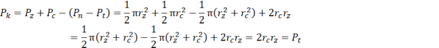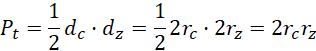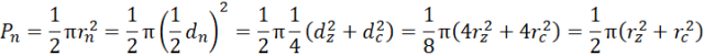 Oznaczamy pole księżyców: Pk; pole niebieskiego półkola: Pn; pole zielonego półkola: Pz; pole trójkąta: Pt, o promieniach r i średnicach d o takich samych indeksach.