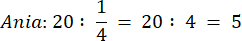 Aby ustalić, który z uczniów się pomylił, musisz podzielić liczbę wszystkich osób w klasie przez dany ułamek.