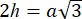 Sześciokąt foremny składa się z 6 trójkątów równobocznych. Jedna przekątna składa się z dwóch wysokości, dlatego, aby obliczyć jej długość skorzystaj ze wzoru na wysokość trójkąta równobocznego: