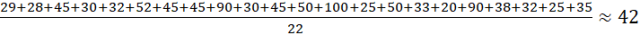 Mediana z szeregu 20, 25, 25, 28, 29, 30, 30, 32, 32, 33, 35, 38, 45, 45, 45, 45, 50, 50, 52, 90, 90, 100 to 36,5. Średnia arytmetyczna i mediana zmalały.