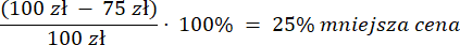 Jeśli początkowa cena wynosiła 100 zł, to po pierwszej zmianie zostaje obniżona o 50%, czyli wynosi 50 zł. Następnie po drugiej zmianie cena zostaje podniesiona o 50% od ceny po pierwszej zmianie, czyli 50 zł · 50% = 25 zł. Ostatecznie cena wynosi 50 zł + 25 zł = 75 zł.
