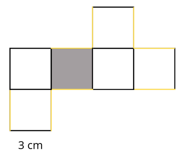 Skala 3 : 1 to skala powiększająca, oblicz długości krawędzi tego prostopadłościanu w skali, mnożąc rzeczywisty wymiar przez 3. Następnie narysuj siatkę sześcianu i oznacz krawędzie prostopadłe do podstawy.