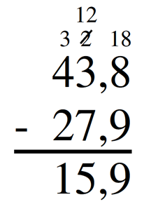 W odejmowaniu ułamków dziesiętnych sposobem pisemnym pamiętaj o zapisaniu liczb tak, by w kolumnie znajdowały się cyfry jednego rzędu. Odejmowanie zacznij od liczb najmniejszego rzędu. Sprawdzenie obliczeń wykonaj dodając do siebie wynik odejmowania i odjemnik.