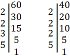 NWD (60, 40) = 2 · 2 · 5 = 20