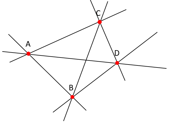 W tym zadaniu narysuj 4 punkty i przez każde 2 punkty przeprowadź proste. Sprawdź ile najwięcej takich prostych można poprowadzić. Odpowiedz na pytanie, czy można tak narysować punkty, by możliwa do narysowania była tylko jedna prosta.
