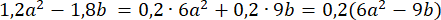 mają wspólny czynnik liczbowy – 0,2, który można wyciągnąć przed nawias: