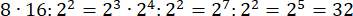 Najpierw zapisz każdą liczbę w postaci potęgi o podstawie 2, a następnie wykorzystaj wzory na mnożenie i dzielenie potęg o takich samych podstawach: