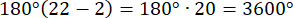 W tym zadaniu oblicz sumę miar kątów dwudziestodwukąta, stosując wzór 180°(n-2), gdzie n jest liczbą boków tego wielokąta.