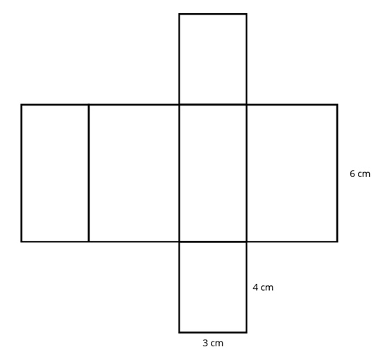 P = 2 · a · b + 2 · a · c + 2 · b · c = 2 · 3 · 4 + 2 · 3 · 6 + 2 · 4 · 6 = 6 · 4 + 6 · 6 + 8 · 6 = 24 + 36 + 48 = 108 cm2