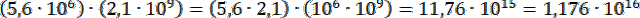 Zapisz iloczyn tak, aby w jednym nawiasie znalazły się potęgi liczby 10, a w drugim pozostałe liczby.