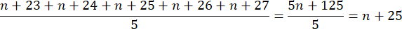 W tym zadaniu oblicz średnią arytmetyczną pięciu kolejnych liczb naturalnych. Jako środkową liczbę przyjmij n + 25.