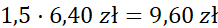 Pomnóż cenę owocu przez jego wagę. Zwróć uwagę na jednakowe jednostki.