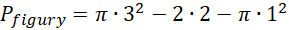 Od pól większych figur odejmij pola mniejszych. Pamiętaj, że pole prostokąta i kwadratu to iloczyn ich boków, a pole koła to iloczyn kwadratu promienia i liczby PI.