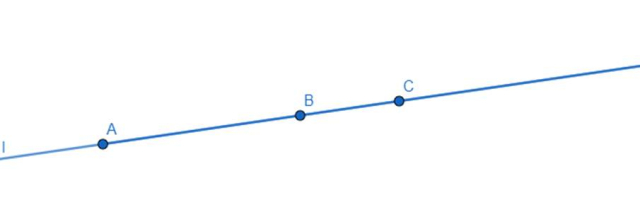 Narysuj punkty A, B, C, które będą należały do jednej prostej i narysuj prostą AC w kolorze niebieskim.