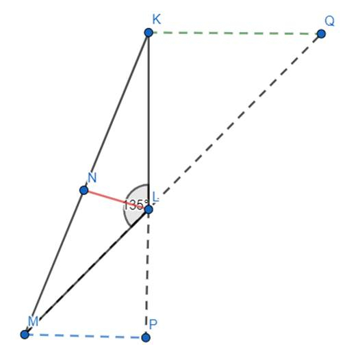 Jeden z kątów w trójkącie równoramiennym, ma miarę 135°. Narysuj taki trójkąt i zawrzyj jego wysokości.
